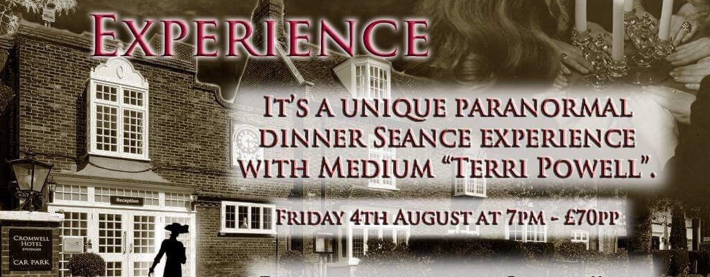 As long as the dinner conversation doesn't get too in depth we should be all ready for Psychic Medium Terri Powell to attempt a little platform mediumship with the group. Terri will work in the classical sense of platform mediumship, which generally means possibly connecting with the spirits related to the group. Although given the age of the Cromwell Hotel and the reports there its equally possible that Terri may pick up something a little more localised. Again this is conceptually more than just platform mediumship on this occasion, again the theory is if platform mediumship connects to the spirits we have close to use then perhaps that connection can help towards the end goal of the Séance.