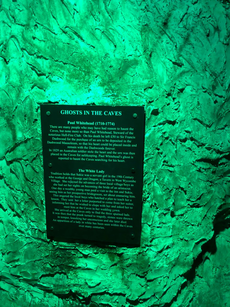 The caves themselves are a network of man-made chalk and flint caverns, which can be found near West Wycombe. The tunnels and caves lead deep underground, extending for over half a mile. Throughout the long winding passages, great Banqueting Hall and various chambers; with some mannequins, there is snippets of information scattered too. The final destination being the Inner Temple past the River Styx. Equally oddly this is all located several hundred feet below the church on top of the hill above.