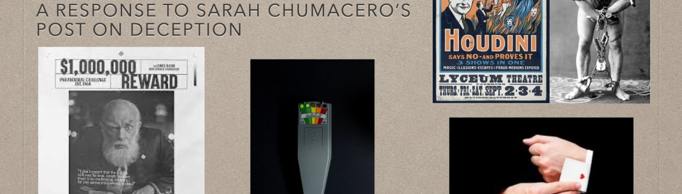 Sarah’s final thought in her post stated; “While our methods may not be as elaborate or dramatic as those of Houdini and Randi; we have to ask the question; is using forms of deception the way to go?”