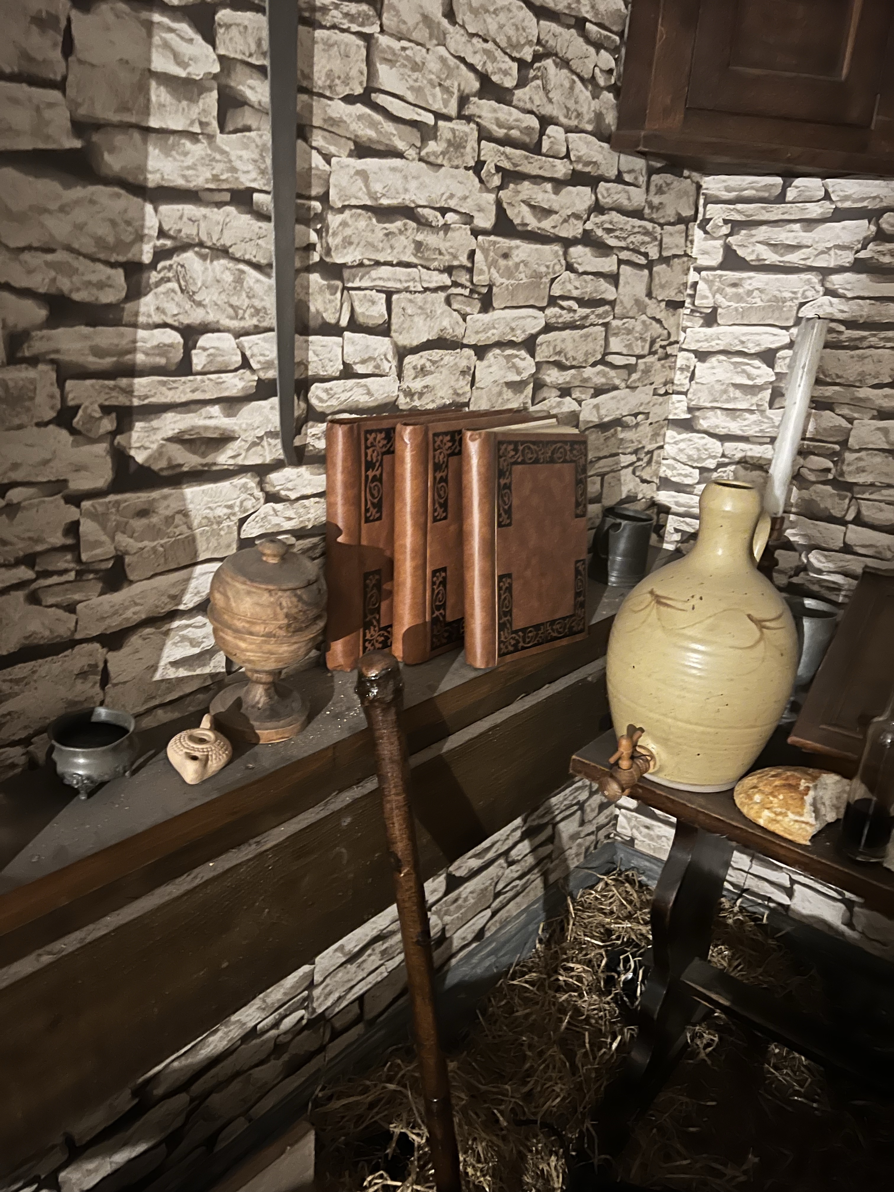 Straight away the small yet oddly deceiving structure of the location became apparent. Whilst the main shop appears quite large, something likely due to the high ceilings; it is basically built around a central stairway with two rooms on each level. The ground floor being a split level, which also has the entrance to the basement under the stairs. Yet from the shop the stairs are accessed by an iron staircase which rises from the shop floor at its rear. At the back is an area where lots of Robin Hood film and TV memorabilia are located. Whilst Graham and I did not spend much time in this room, Jo and Rob told us of an experience that they both had in there at around 22:15. They advised of how they were using the small balls which light up as a kind of communication tool. During which the ball appeared to flash in response to questioning, but the ball itself did not move. Jo also believed that she saw some kind of mass too, like a small white cloud; whatever it was left an impression on her that is for sure.